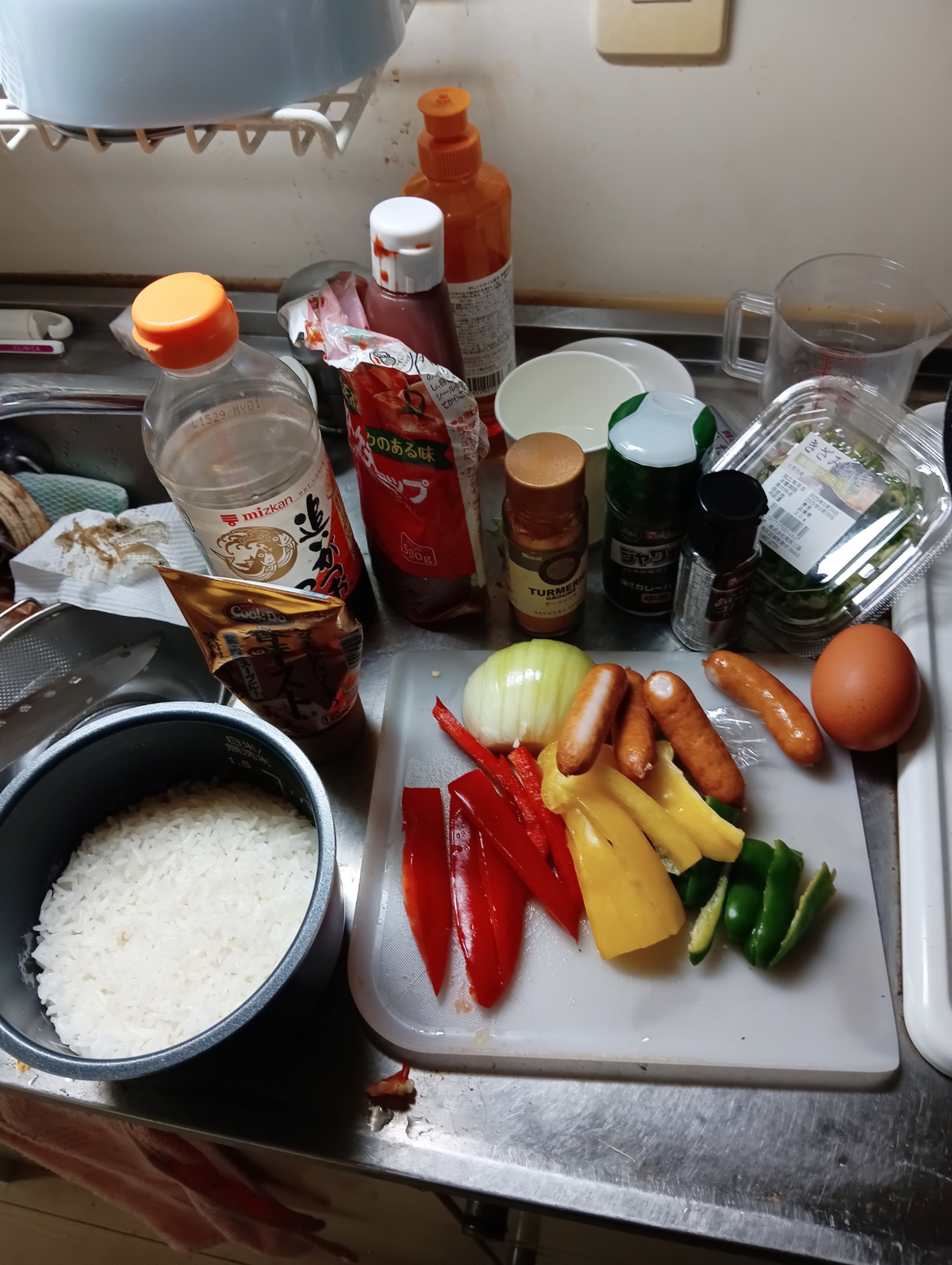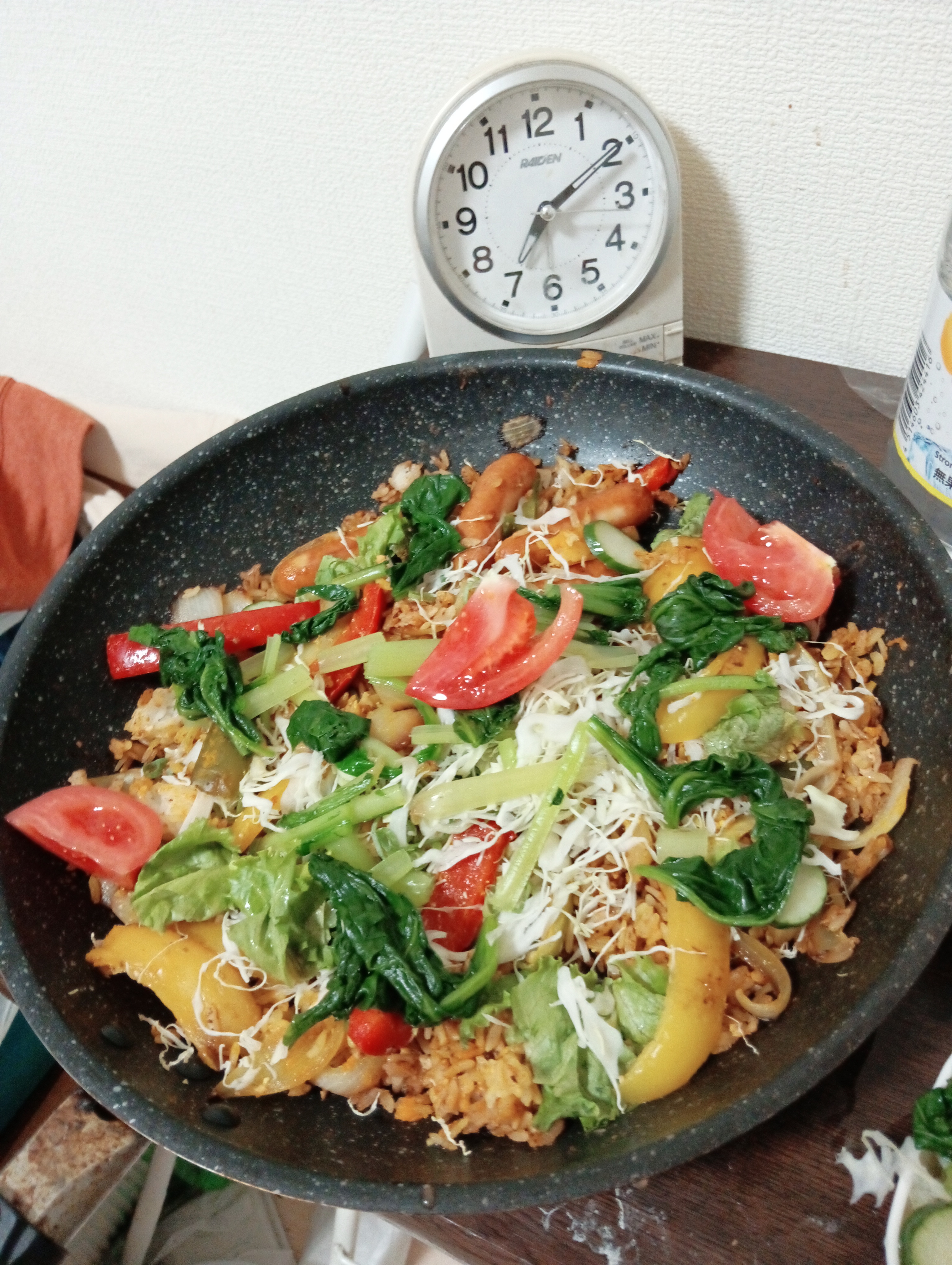 ☆「今夜の何目チャーハンクイズ」→一昨日買った野菜をカレーピラフに。「赤ピーマン・黄ピーマン、・緑ピーマン、玉ねぎ、ネギ、キャベツ、レタス、玉子、ウインナー→9目?トマトときゅうりとブロッコリーほしいかな?野菜ってなに食べたらいいの??スープは?サラダは?バナナは?デザートは?的な自炊生活。パエリアもできるけど、お金と時間というか、経済的負担と体力面負担とか、満遍なく好き嫌いなく食べれる人間は逆にお金と時間と体力が必要なんでしょうか??(( ;∀;)。とりあえず無料米券に感謝<(_ _)> 天才でも天災には勝てない、天災に負けない人間を目指そう。(`・ω・´)つ火土5000&平日1000+小銭C500+αC21世紀の自由と愛と平和?