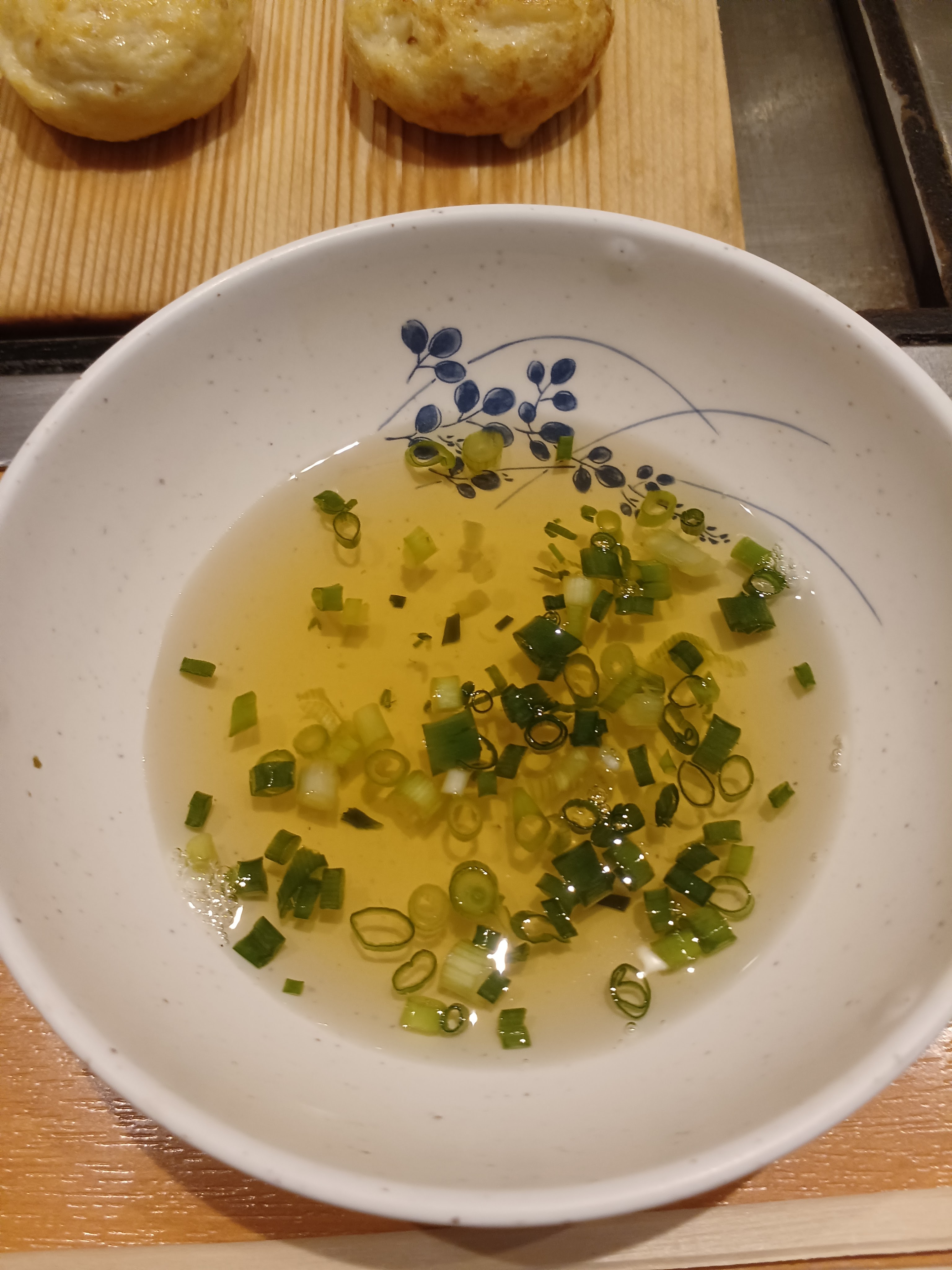 とある方の助言で目を閉じてから食べたら確かに玉子のトロリ感とネギの薬味をおつゆの温もりが感じられて、どちらかと言えば玉子スープを口に含んで食べている感じになりました。
