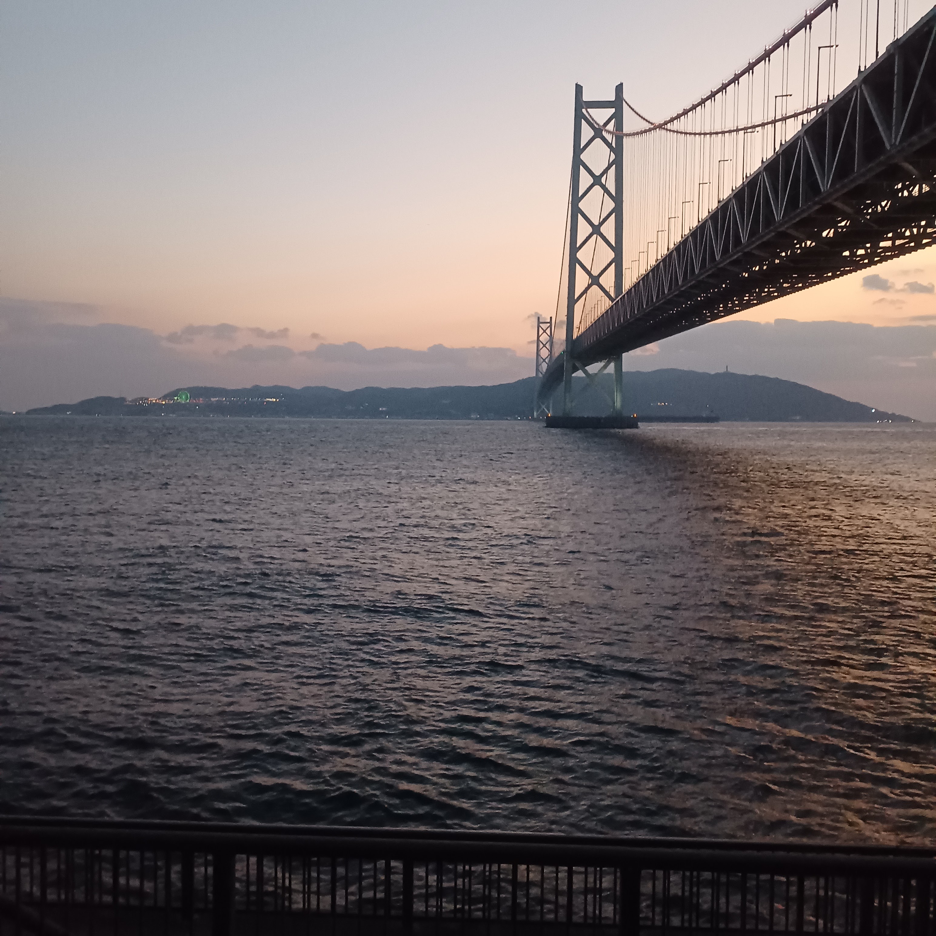 こういう迷いが出たら明石海峡大橋と淡路島と海を眺めたらなんか気持ちよくなるんですよね。太陽と月と青い海と地平線・・・