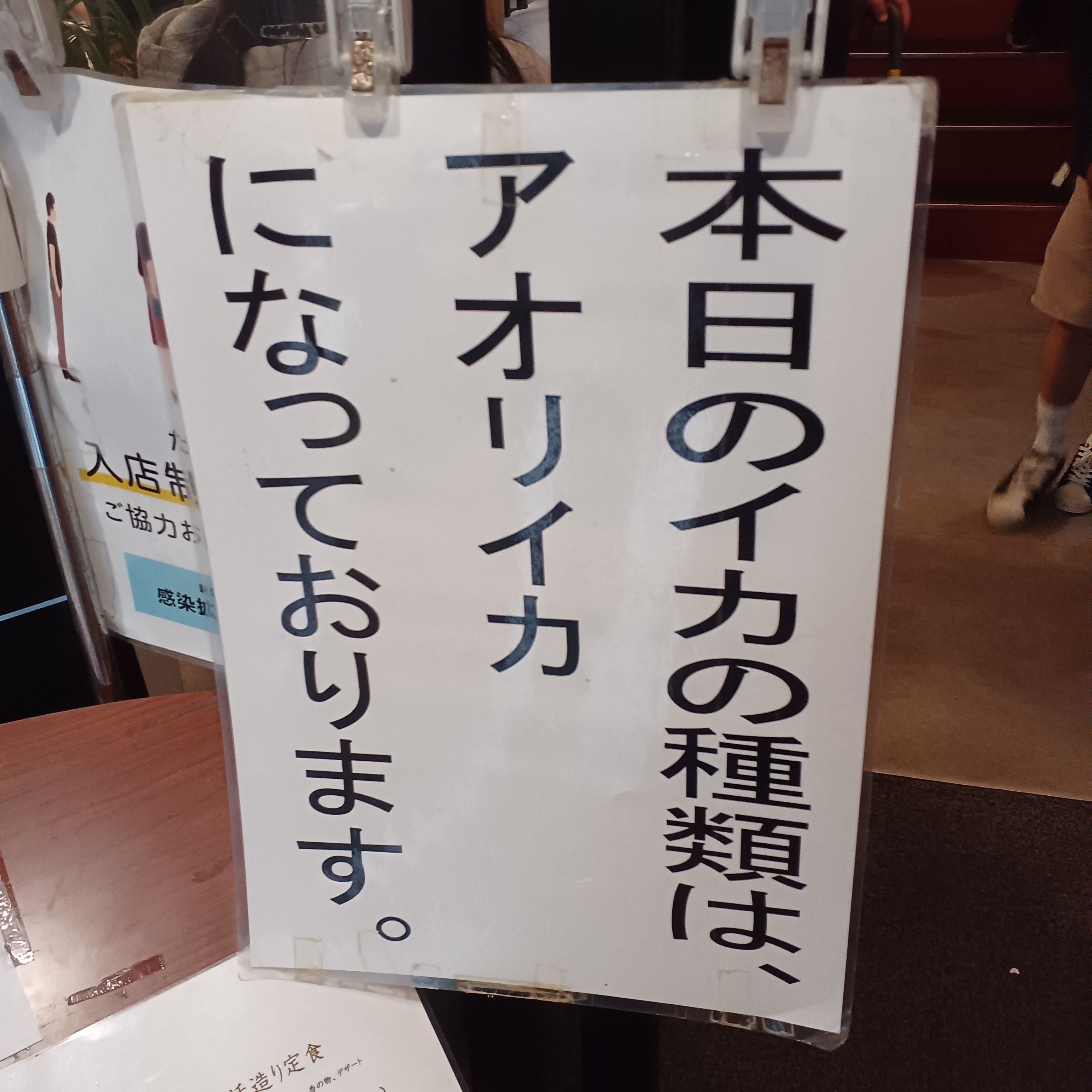 「イカの活き作り定食」を注文しました。この日は「アオリイカ」でした。