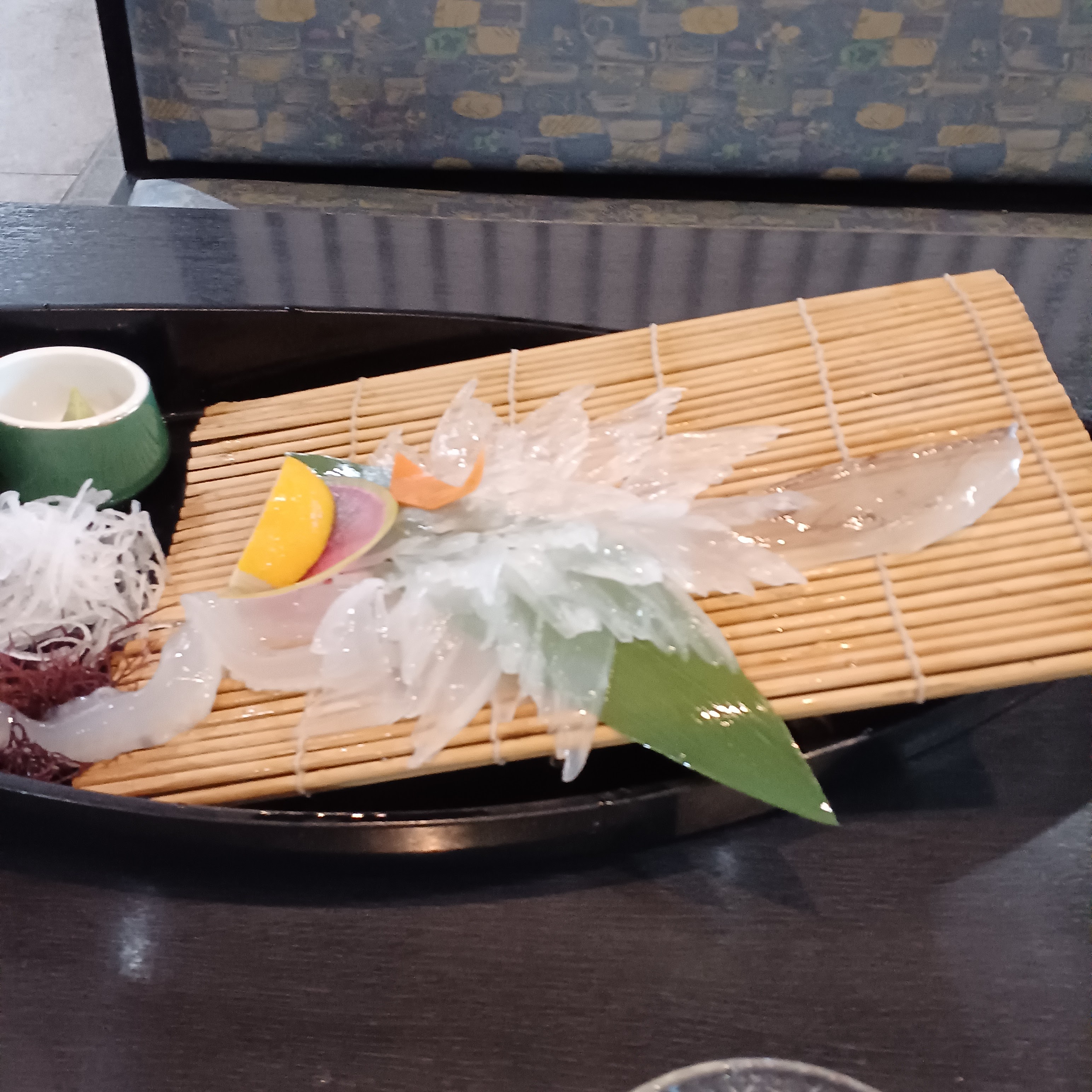 お刺身は足がまだ動いていて凄く新鮮さがあり、花みたいに調理してあり華麗というか透き通っていて綺麗な色でした。