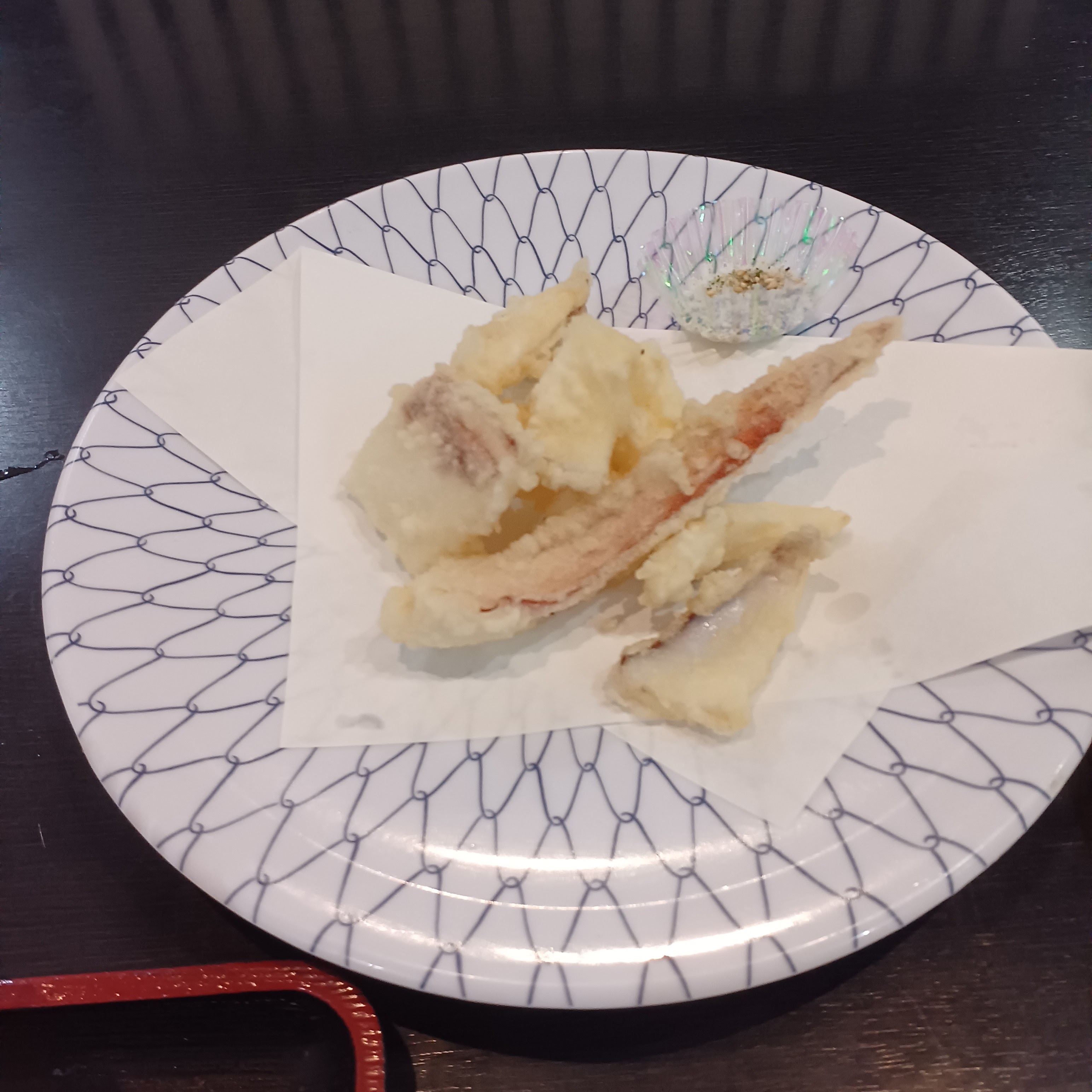 残った足の部分は天ぷらにしてもらい、これも何個もいけそうなくらいお菓子のポテチに似た甘さで美味しかったです。
