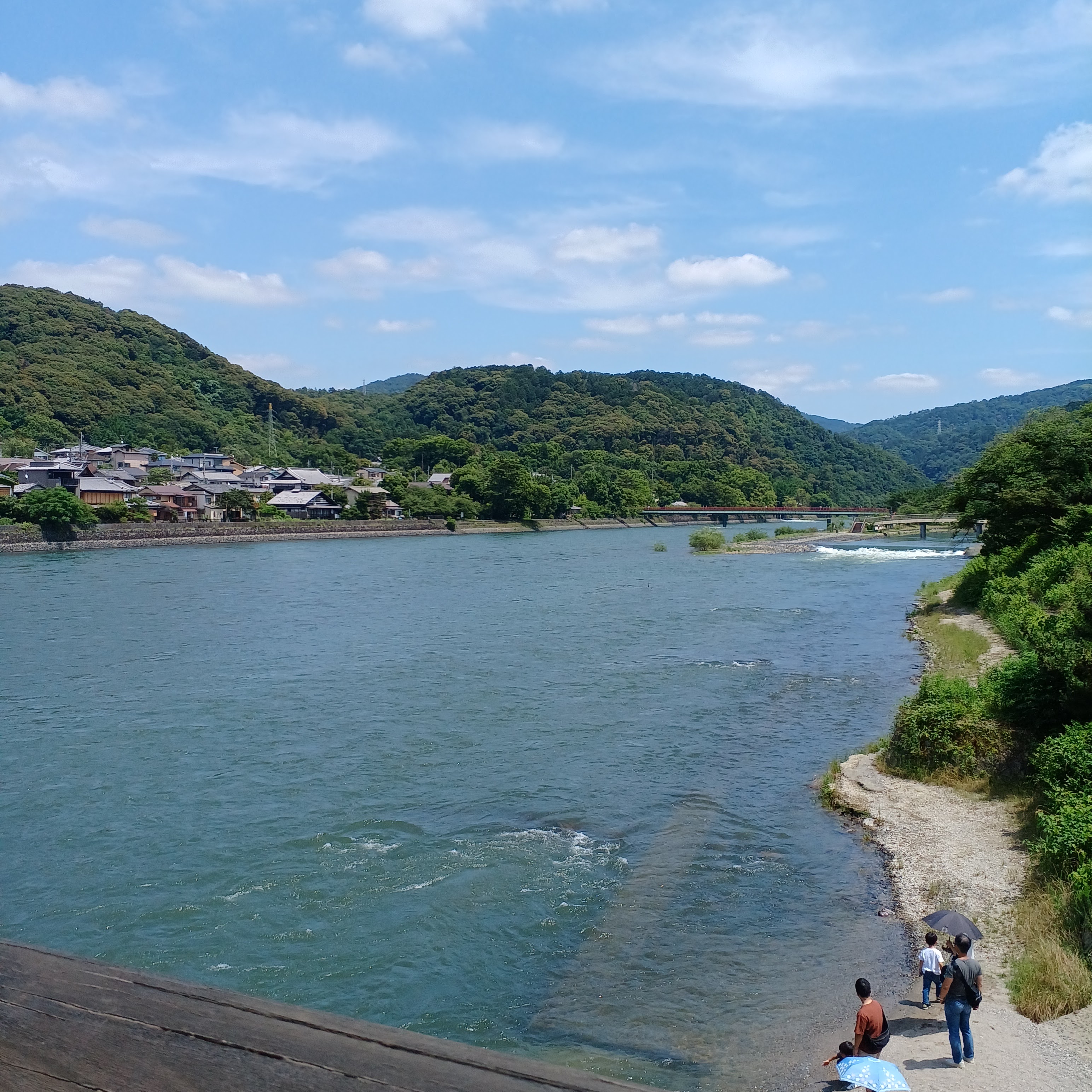 宇治川は流れが強くて、少し手で川水を触ったら少し暖かいくらいの温度でした。確かに今日は暑かったです・・・。