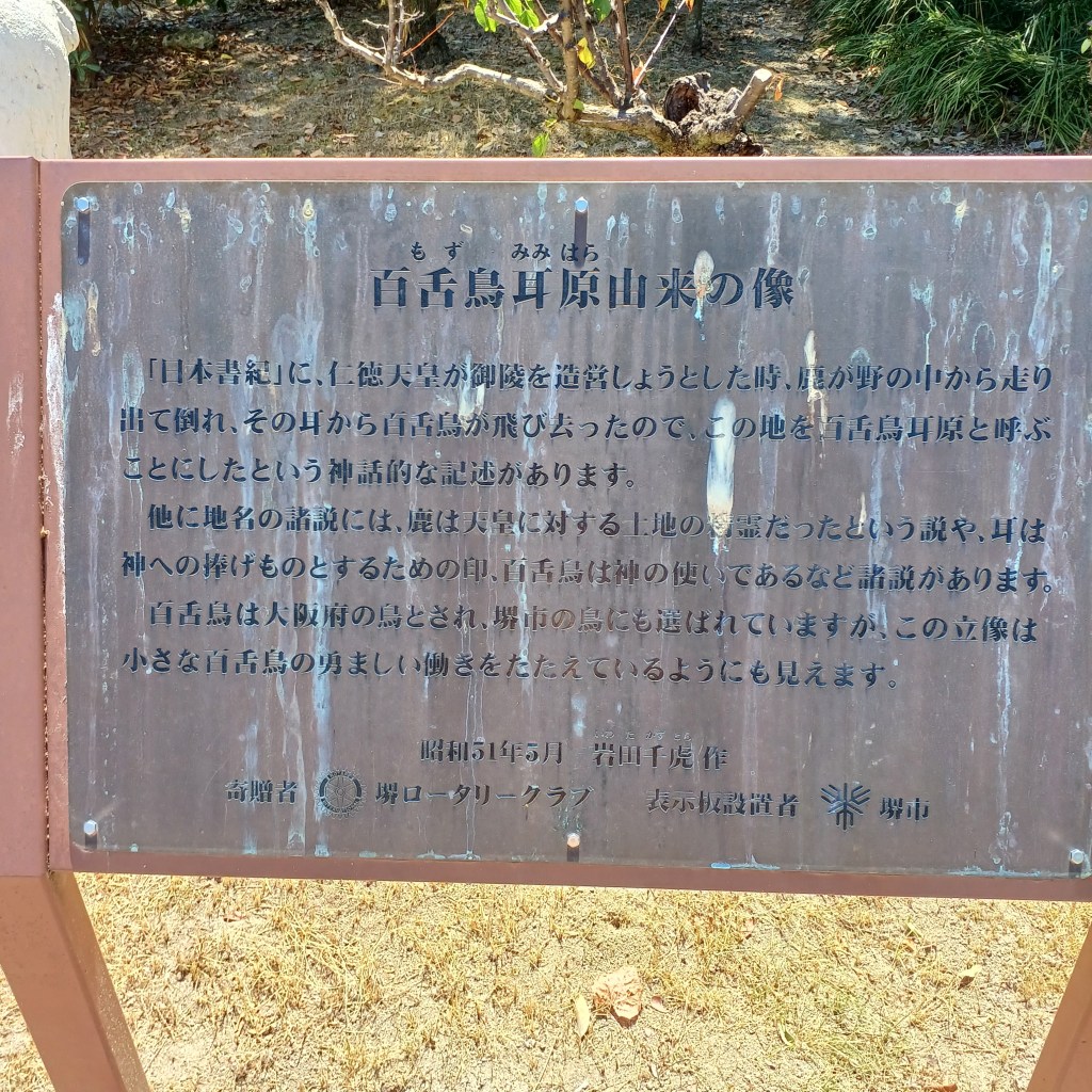 「仁徳天皇」の銅像もあり、動物と一緒にいる感じで立っていました。