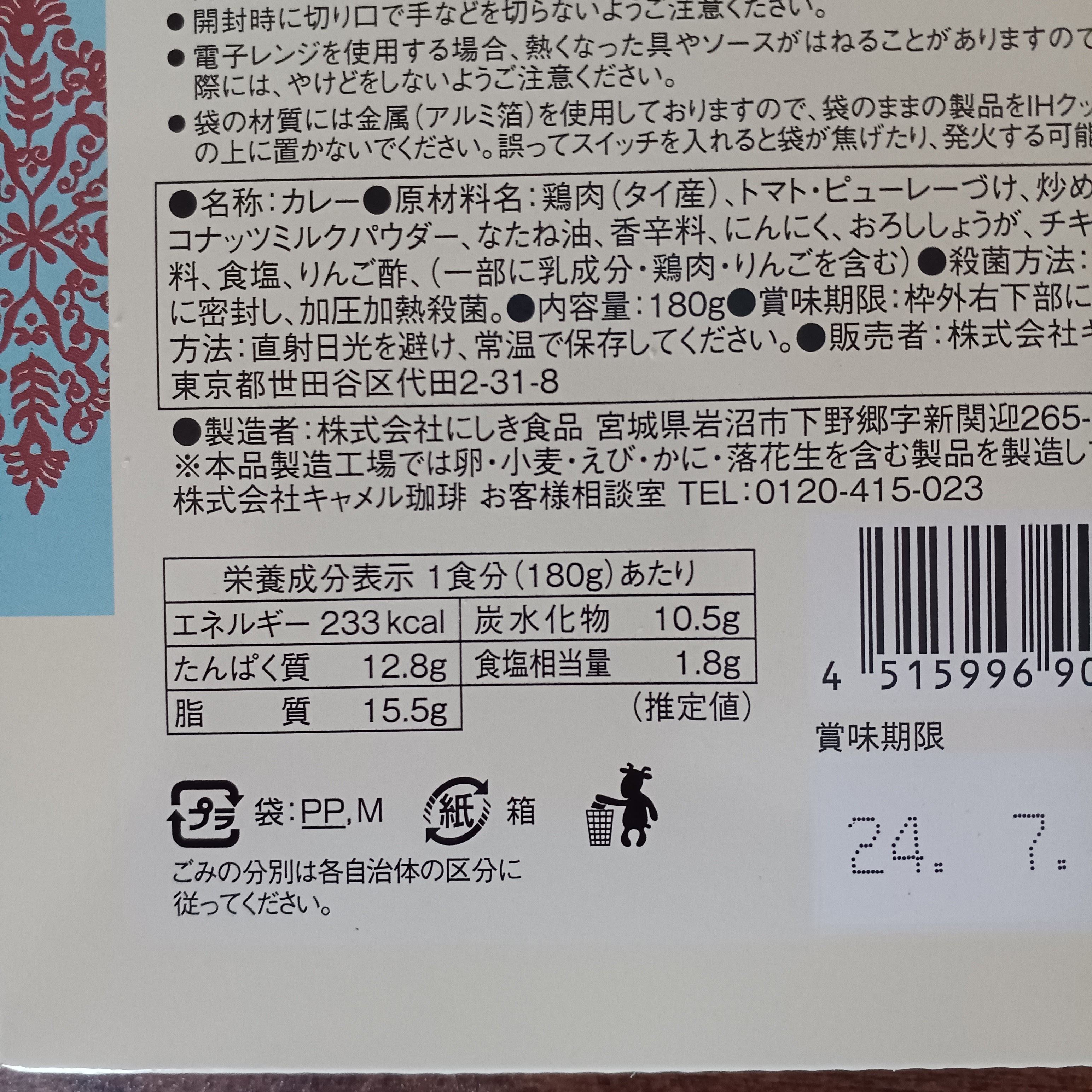 南インド・ケララ地方(どこだろ??)の代表的なチキンカレー、とのこと。1つ税込み378円でしたが、ここは500円玉1枚で支払いました。これが「エンジェルナンバー500」なんでしょうね。世界中を500で結ぶ数字にこの時はパワーを感じました。