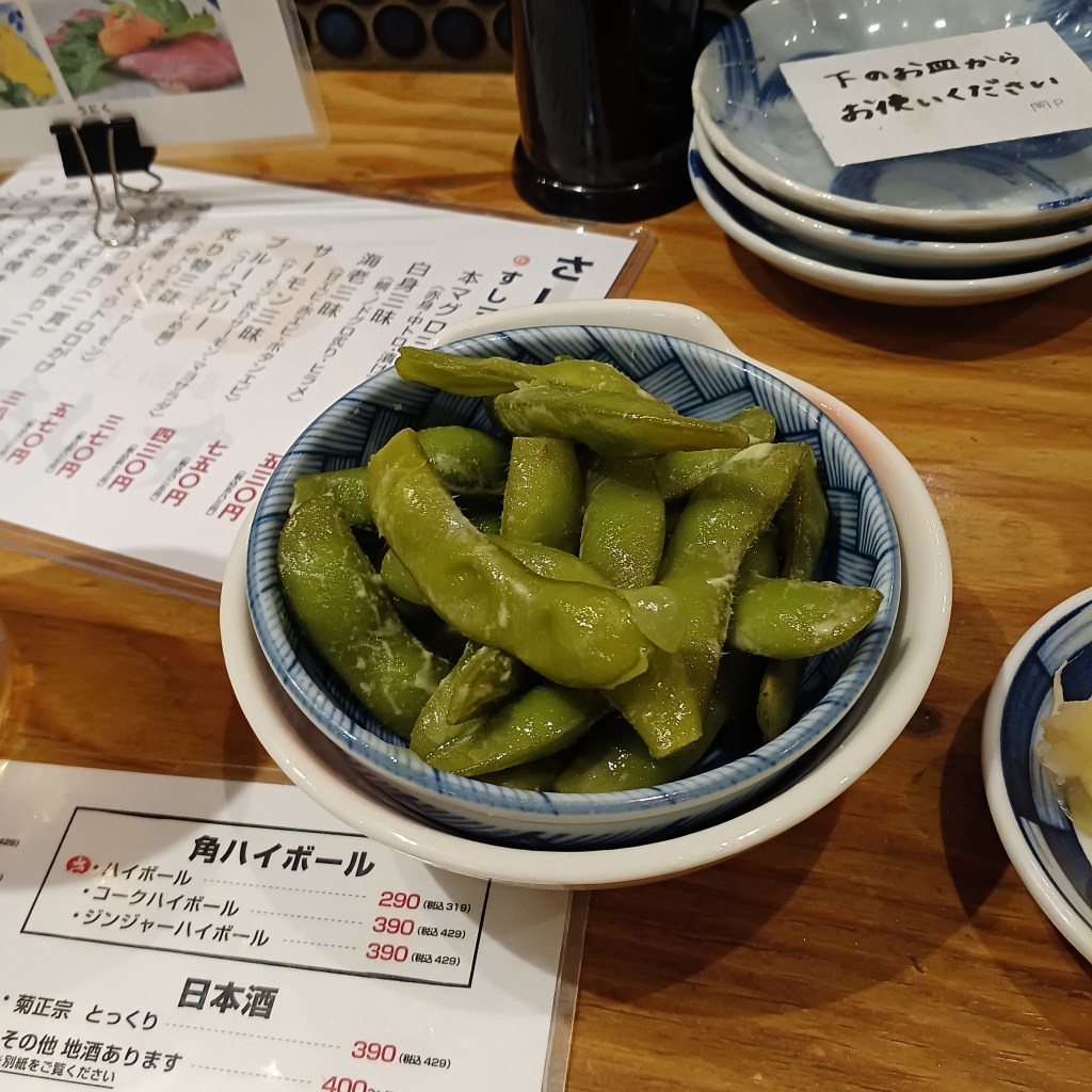 手始めに「わさび枝豆」を注文し、ジンジャエールと一緒に食べました。