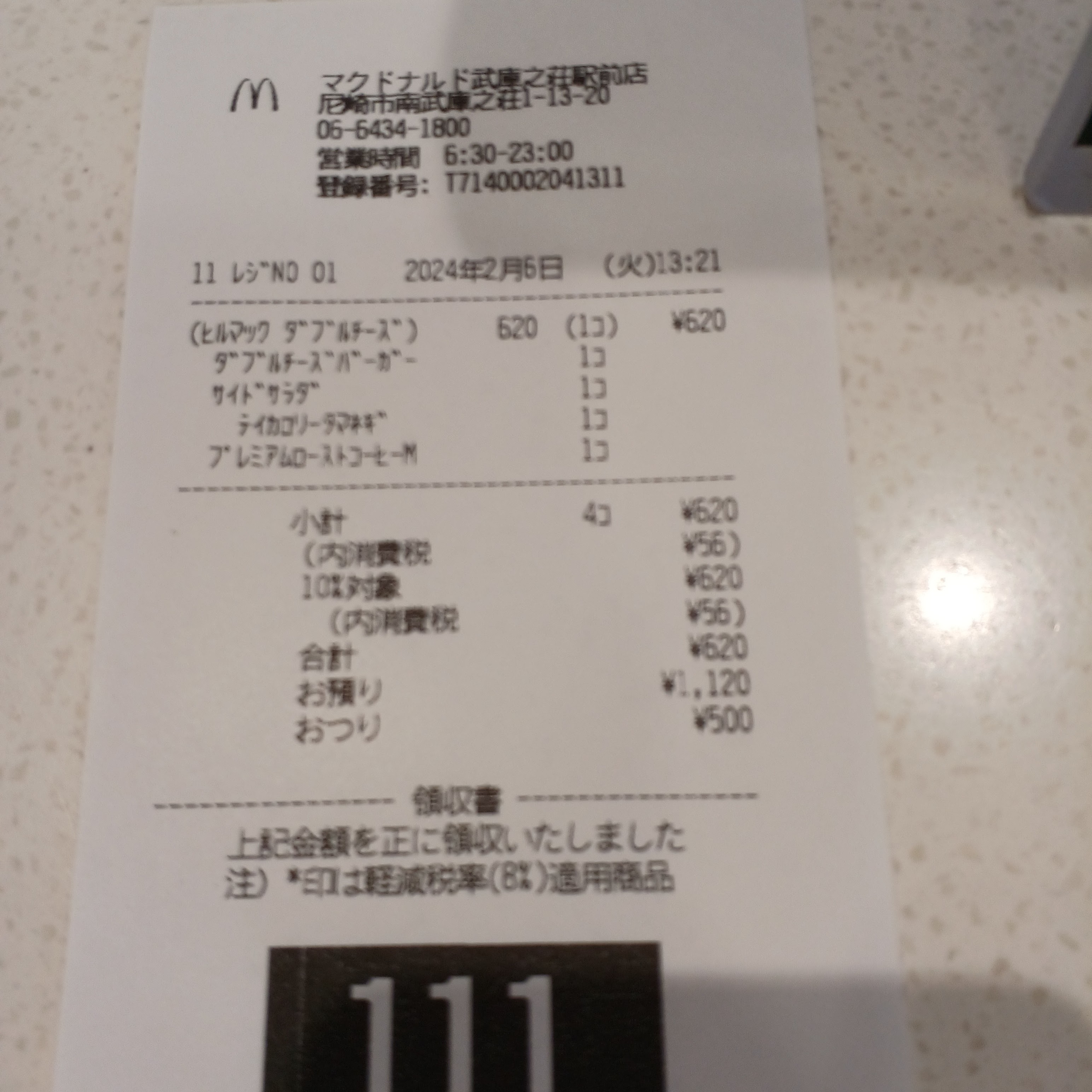 昼食はマクドで「ダブルチーズバーガーセット」を620円で注文しました。