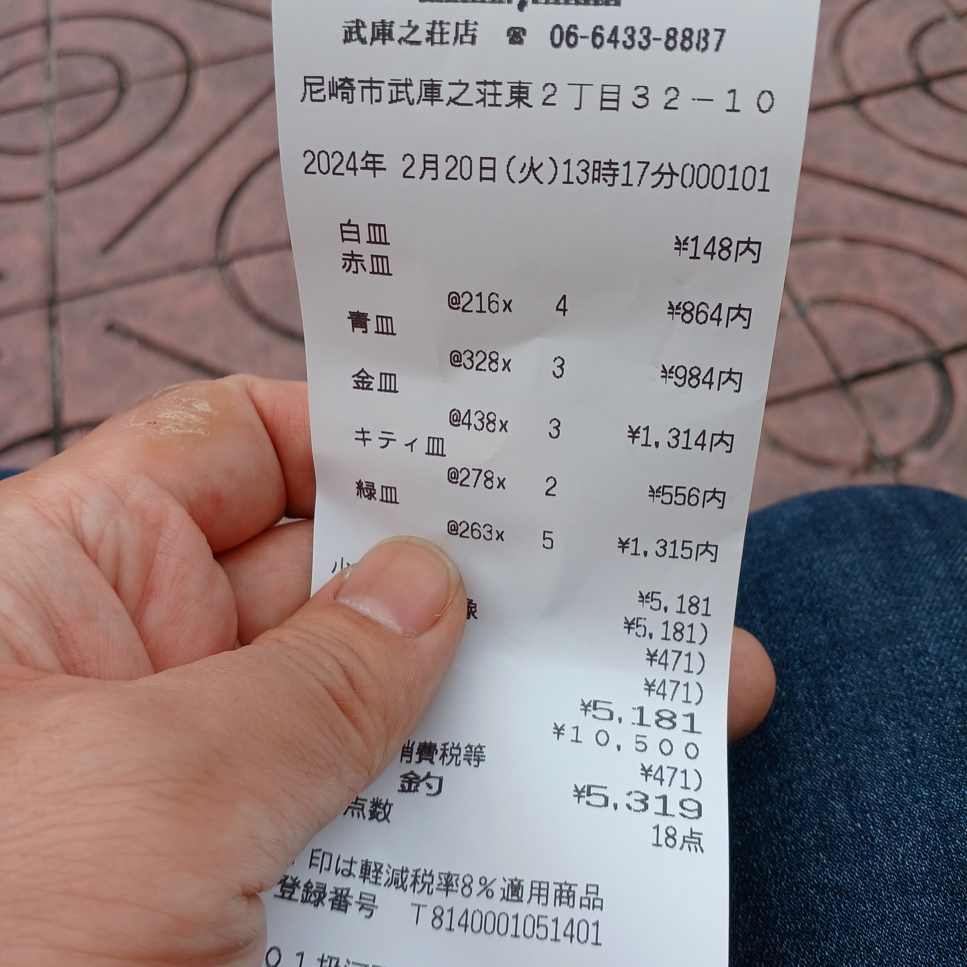 兄は「5181円」に対し「10500円」(500円玉1枚使用)で支払ったみたい。
